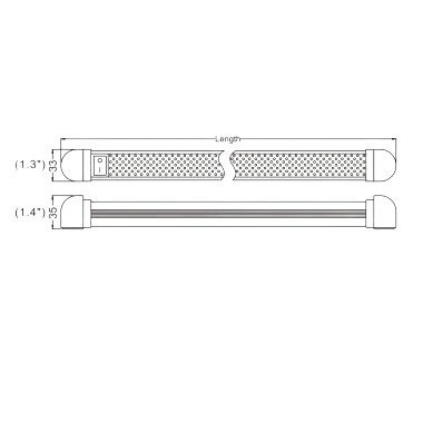 Length – 225mm, width – 33mm, height – 35mm